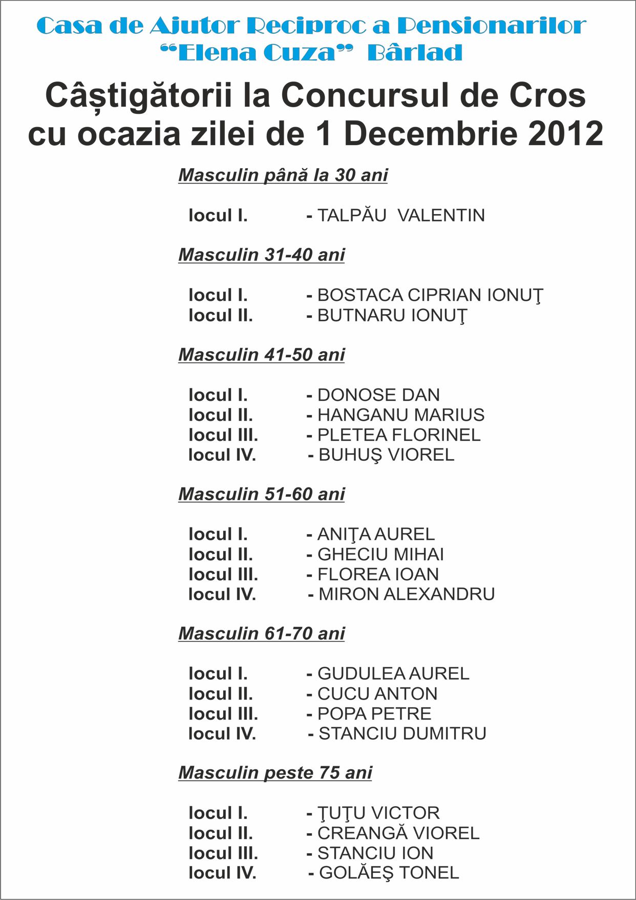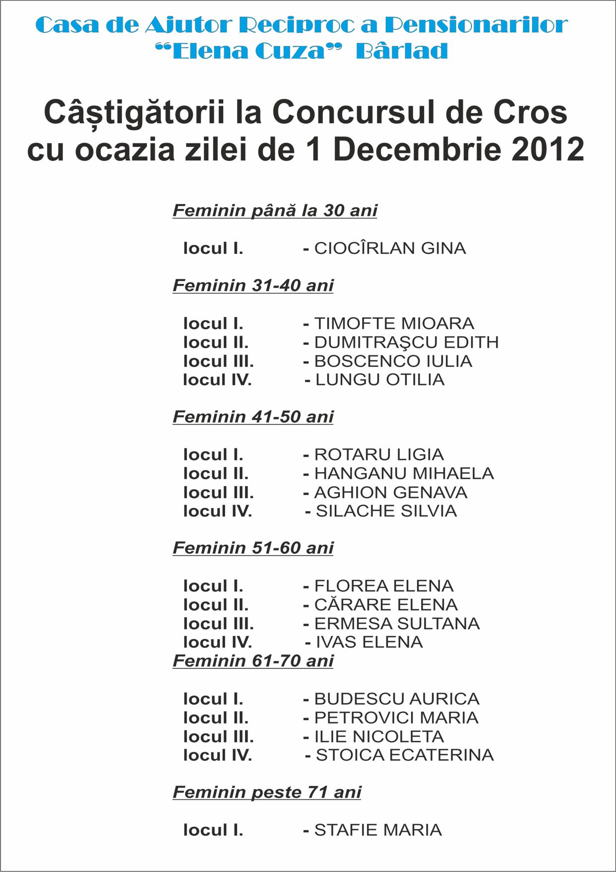 Castigatorii Concursului de Cros organizat cu ocazia Zilei Internationale a Persoanelor Varstnice, 1 Octombrie 2012 ...detalii
