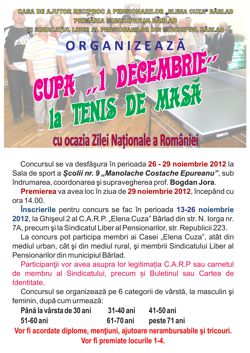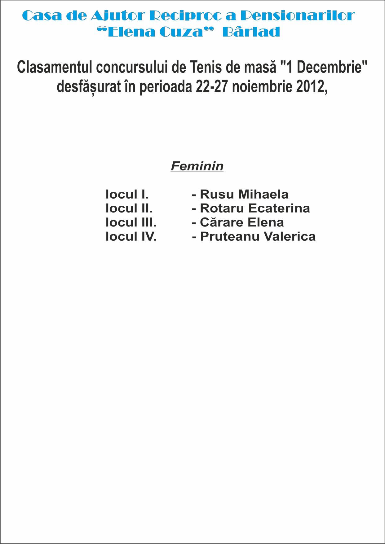 Castigatorii Concursului Cupa Toamnei la Tenis de Masa organizat cu ocazia Zilei Internationale a Persoanelor Varstnice, 1 Octombrie 2012 ...detalii