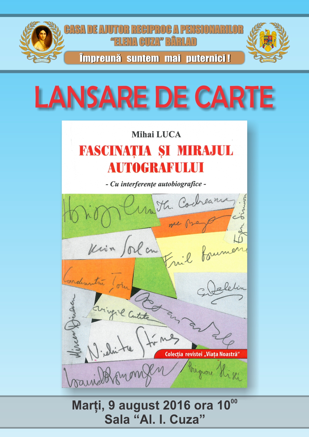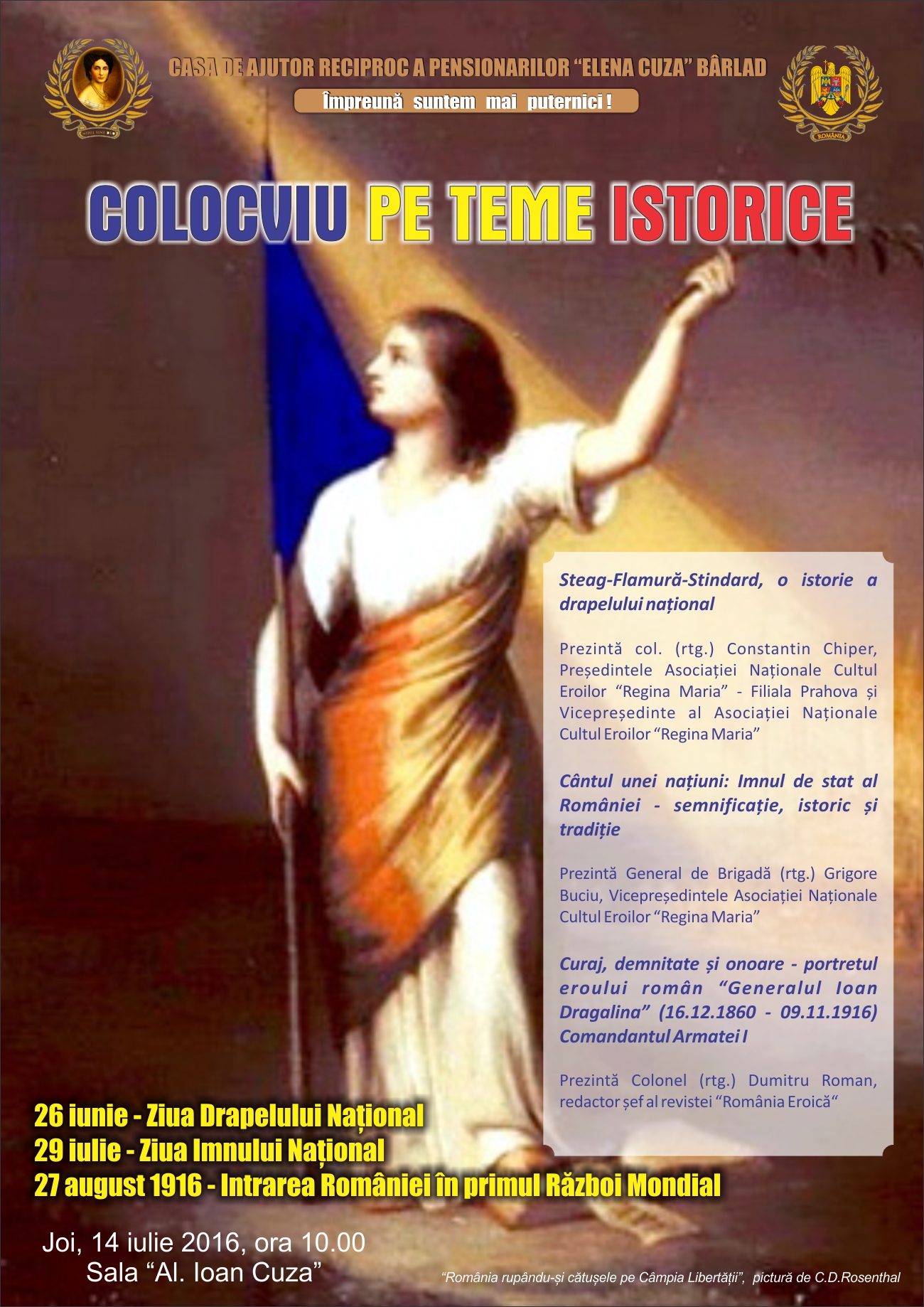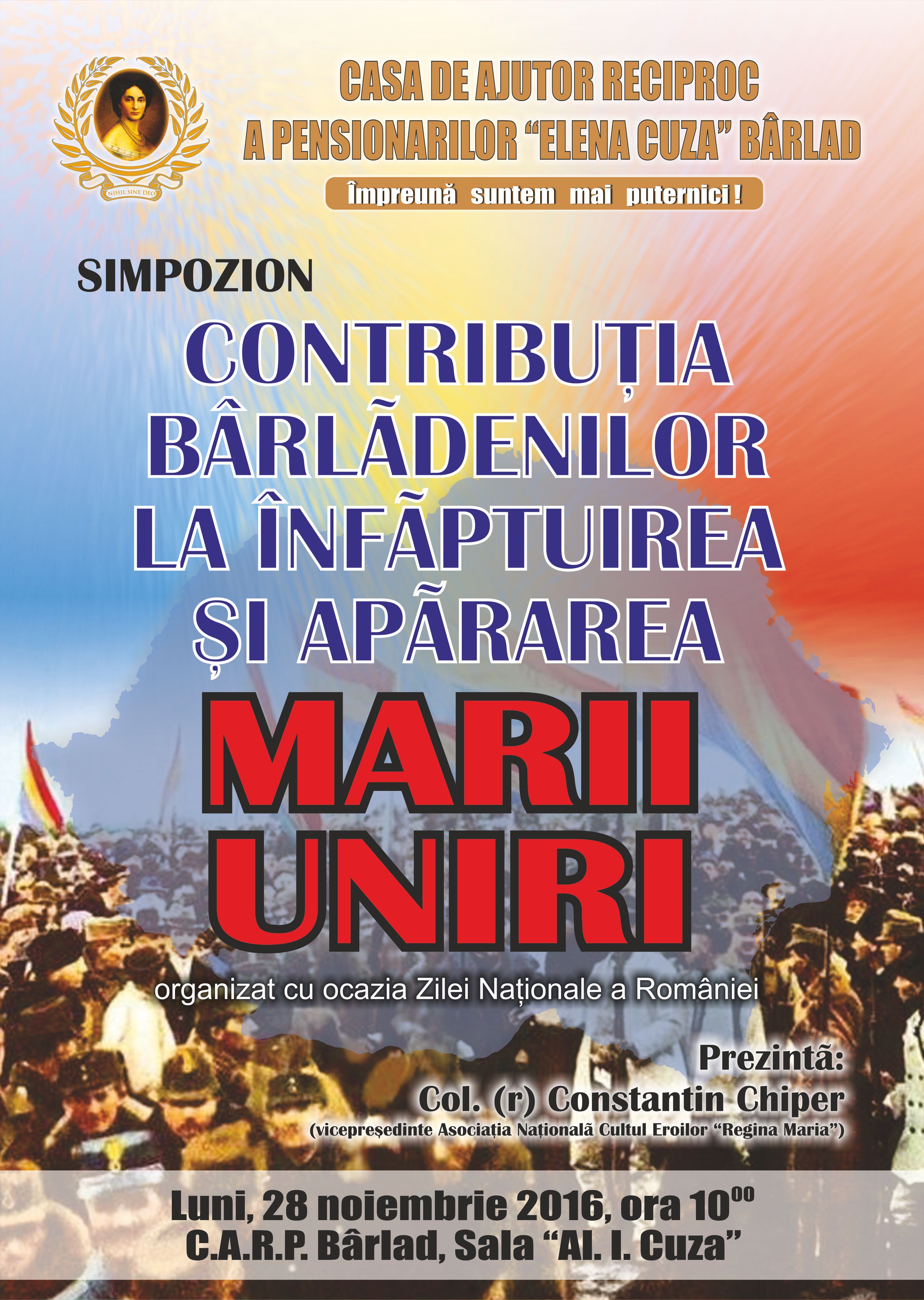 1 Decembrie 2016! Ziua Națională a României! Mărturisesc sincer că Speranța îmi dă curaj, iar Dumneavoastră, odată cu mine, știu că simțiți la fel. Multe conjuncturi ne-au ucis încrederea. Nădăjduiesc să nu se mai întâmple. Se vor aduna – sunt sigur – fiii acestui neam de prin străinătățurile unde slugăresc, vor redescoperi locul natal și Patria dintotdeauna, se vor ruga creștinește și vor pune umărul la propășirea României. Vor zidi case pentru ei și copiii lor, vor face șanțuri împotriva puhoaielor, vor reface codrii și vor umple dealurile cu vii, vor reface lanurile și vor crește stupinele, vor curăța imașurile pentru cirezi de vite și turme de oi, vor îmblânzi fiarele pădurii și vor redescoperi drumul spre școală și biserică, vor alerga la chemarea României pentru apărarea fruntariilor ei. Pentru că „tot ce-i românesc, nu piere!”
