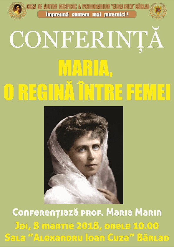 C.A.R.P. Elena Cuza Bârlad vă invită la dezbaterea: Basarabie, Basarabie, Scumpă icoană în inimă purtată, ce va avea loc marți. 27 martie 2018, ora 11.00 în sala Al. I. Cuza a Casei.