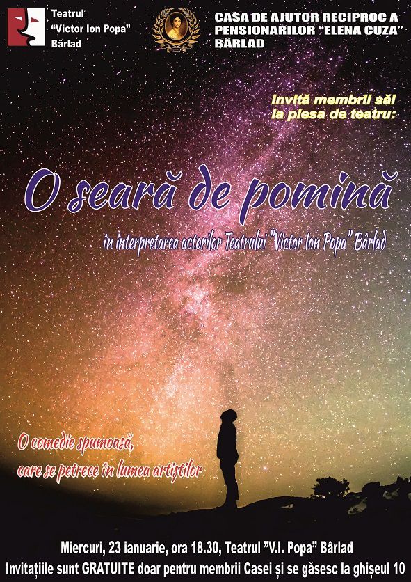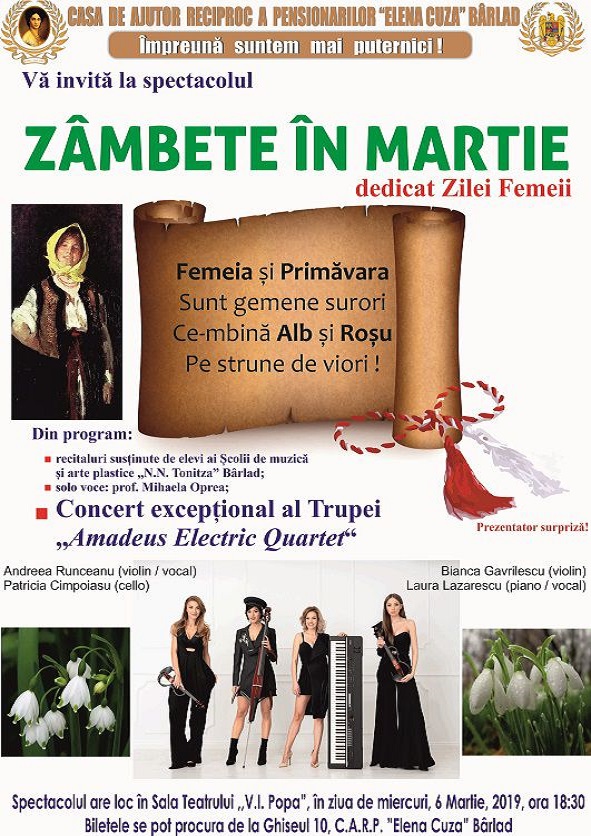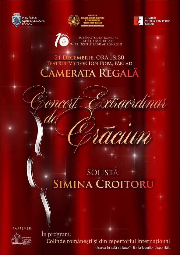 Casa de Ajutor Reciproc a Pensionarilor ,,Elena Cuza’’ din Bârlad, Primăria și Consiliul Local Bârlad și Teatrul ,,Victor Ion Popa’’ au reușit să facă un gest deosebit în întâmpinarea sărbătorile de iarnă, anume aducerea la Bârlad a Cameratei Regale. Camerata Regală a luat naștere în 2009, activitatea sa fiind exprimarea vie și multicoloră prin muzică a capacității de a visa fără limite, a dorinței de a atinge cele mai înalte standarde prin instrumentiști versatili, cu o vastă cultură muzicală, ce au responsabilitatea de a reprezenta România. Descrierea Cameratei este făcută de Principele Radu în câteva cuvinte: "Talentul și pasiunea înfocată...... într-o Românie demnă reprezintă o bună carte de vizită." La Bârlad, pe scena Teatrului ,,Victor Ion Popa’’, alături de Camerata Regală, s-a aflat în prim plan unul din tinerele talente ale muzicii românești și în același timp o mare speranță pentru viitor....