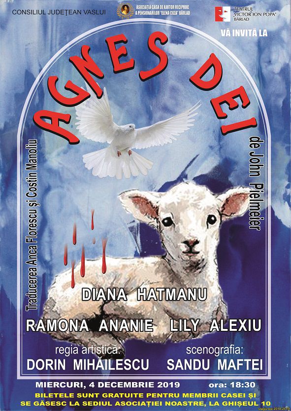 „AGNES DEI, de John Pielmeier este un spectacol pe care, în mod evident, trebuie sã-l vedeți și nu doar pentru cã a avut 599 de reprezentații pe Broadway și trei nominalizãri la Premiile Oscar, ci și pentru cã subiectul existã în fiecare dintre noi, fiind o luptã veșnicã între bine și rãu, între frumos și urât, între legal și ilegal, între ce crezi tu și ce cred ceilalți. Un spectacol care ne invitã sã reflectãm și sã mãrturisim cã nu existã decât un singur lucru care ne apropie de Dumnezeu – IUBIREA! Textul este o reflecție asupra forței credinței și nevoii de miracol a omului modern. Acțiunea piesei se petrece într-o mãnãstire de maici. În chilia uneia dintre cãlugãrițe este descoperit cadavrul unui nou-nãscut. De crimã pare a fi vinovatã mama pruncului, sora Agnes. Cu investigarea omorului este însãrcinat un medic psihiatru, doctor Martha Livingstone, care, din discuția cu maica superi...